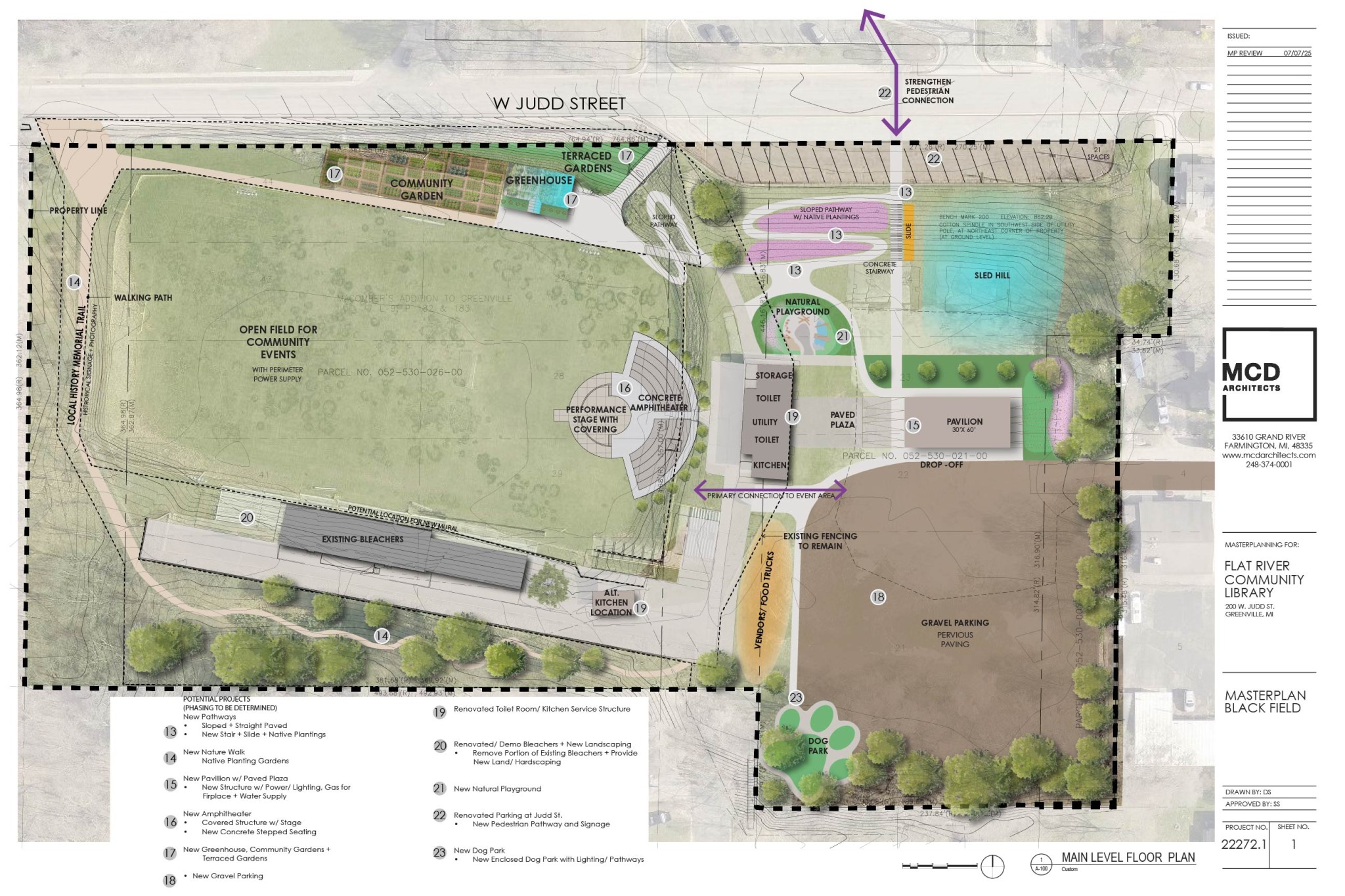 The history of Greenville’s schools and library have been intertwined for generations. The Ladies Library Association library, formed in 1885, relocated their collection into the Central High School when it was built in 1913 to create a public school library. The group also provided its first librarian. The later established Greenville City Library spent transitional periods housed in multiple past school buildings. And in 1996, the library purchased the site of the former Central High School to construct the Flat River Community Library building of today. We are honored to continue this relationship with the school district to revitalize Black Field and extend Dr. Black’s vision of community education and enrichment for the generations to come.